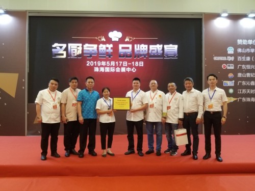 中国烹饪协会五大名厨为恒兴颁奖,奖项为“优质食材供应商”