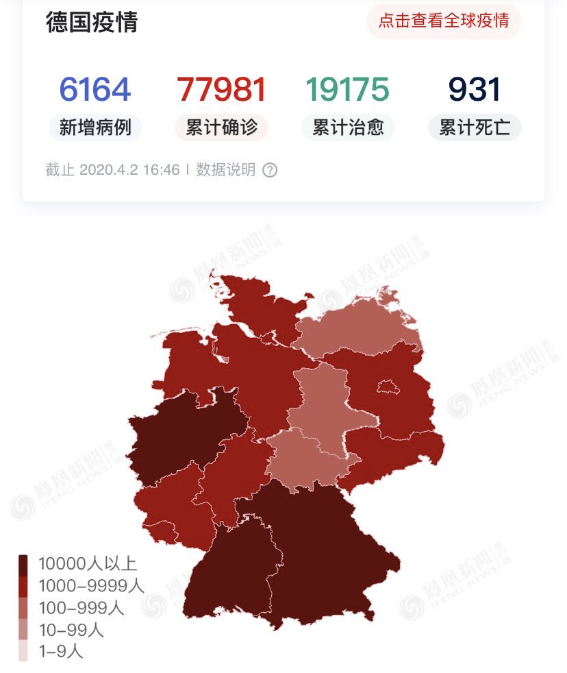 在德国7.7万多感染病例里,有900多人死亡,死亡率为1.2%。这在疫情爆发最严重国家里是比较低的。至于这背后的原因是什么,目前说法不一。