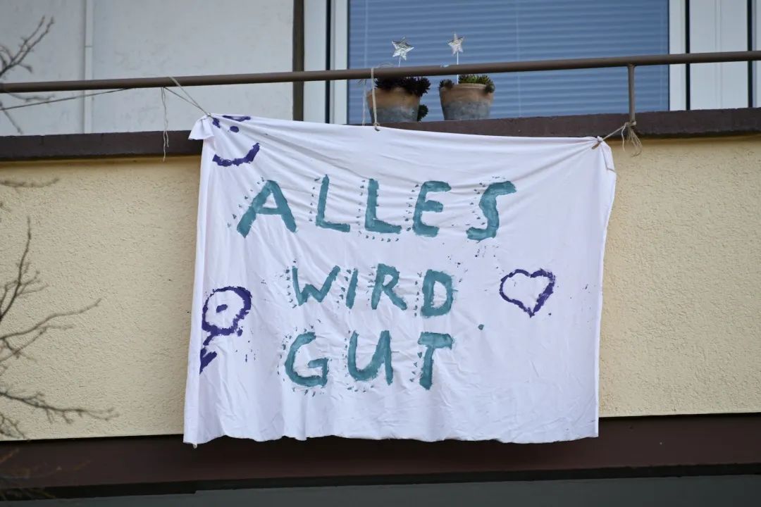 ▎柏林一个公寓阳台上悬挂着“一切都会好起来”的横幅(Uwe Zucchi / dpa)