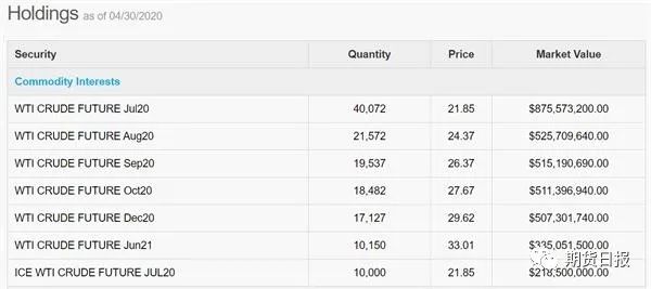 截至4月30日USO各月份的原油期货合约持仓情况