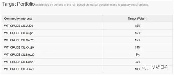 截至4月30日USO的目标原油期货合约持仓比例
