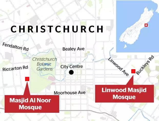 当天中午1点40分左右,枪手在南岛城市基督城的Hagley公园中的Al Noor清真寺内开枪射击。据从现场逃命的男子描述,事发现场至少有两名枪手开枪;随后,在当地Linwood区的另一座清真寺内发生了第二起枪击。另外,基督城医院外也随之发生了第三次枪击。