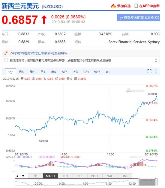 3月15日,新西兰元兑美元持续升值,日内升值近0.4%。