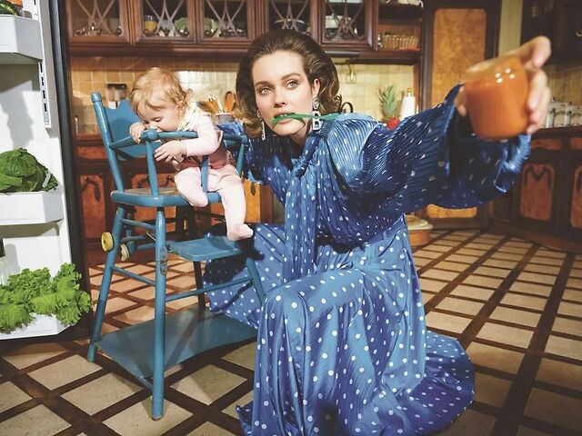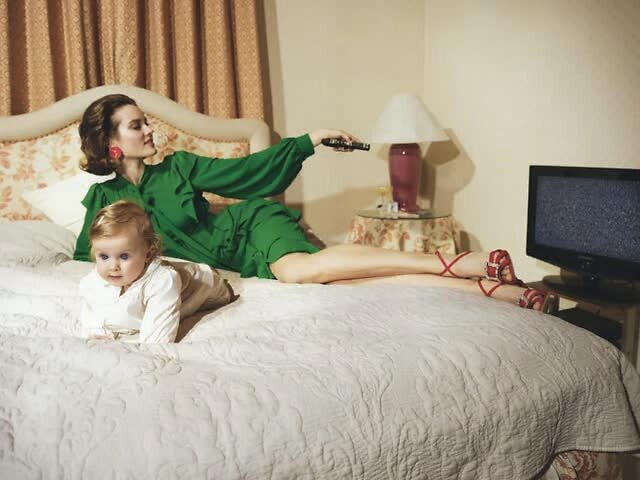 波兰版5/6合刊封面大片, 超模Jac Jagaciak带着女儿出镜, 浓郁色彩, 那个少女JAC已经变身成俏丽妈咪。