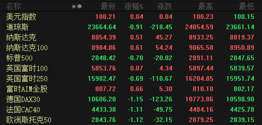 周三美国三大股指收盘涨跌互现,道指收跌逾200点,纳指收涨0.51%,标普500指数收跌0.7%。
