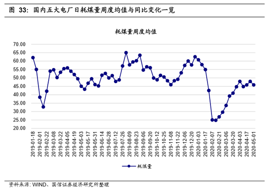 我们使用剔除国电后的5大发电集团日耗煤作为扩散指数的计算基准。从耗煤量周度同比来看,由于去年基数较小,本周电厂日耗煤量同比为-0.9%,较上周的-3.5%继续抬升2.6%,仍明显高于去年4月周同比均值-7.4%。