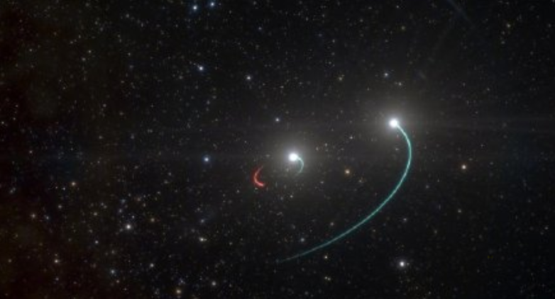 当地时间5月6日,欧洲南方天文台官网发布消息称,欧洲南方天文台(ESO)和其他研究所组成的一个天文学家小组发现一个距地球1000光年的黑洞。据悉,这是迄今为止发现的距离太阳系最近的黑洞。这个黑洞位于望远镜座(Telescopium)的一个编号为HR 6819系统中,有两颗伴星(蓝色轨迹)围绕黑洞(红色轨迹)旋转。