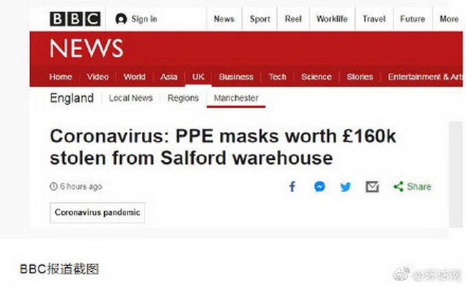 英国广播公司(BBC)8日消息称,英国索尔福德的一个仓库内8万只N95口罩被盗,这些口罩原本计划提供给英国国家医疗服务体系(NHS)工作人员和一线的抗疫人员。