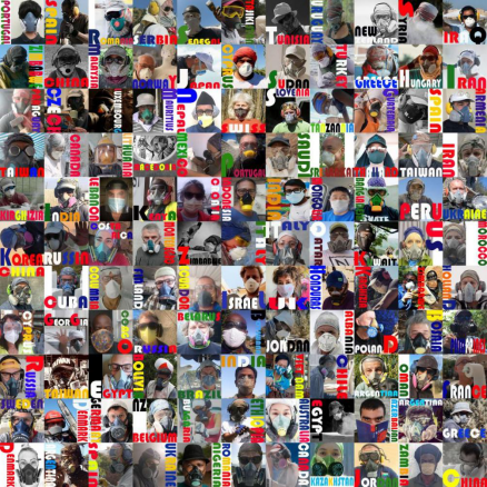 “国外现在戴口罩的也没有那么多,很多人不觉得这是必须要做的,”刘洋说,平日的雕塑现场时常噪音绕耳、粉尘起飞,口罩、护目镜等都是雕塑家们的标配。身为国际雕塑创作营联盟(ISSA)秘书长,刘洋与几位联盟成员商议后,敲定了初步计划:邀请100个国家的雕塑家代表提供佩戴专业防护设备的工作照,然后拼接成一张巨大的照片墙,以强大的视觉冲击力倡导大家重视戴口罩。