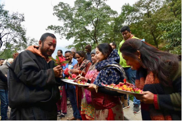 2月底到3月初的尼泊尔。刘洋(左)受到当地人的欢迎,大家都没有戴口罩