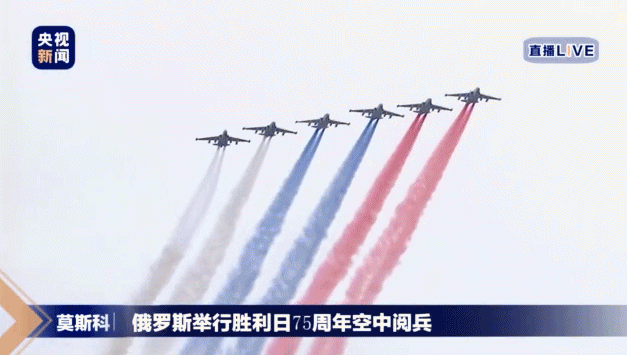 这次空中阅兵保留了很多传统,来自俄空天军的“勇士”、“雨燕”两支特技飞行队的9架战机将进行特技表演,压轴出现的苏-25战机,在空中拉出三种颜色的彩烟,红、白、蓝,也就是俄罗斯国旗上面的三个颜色。