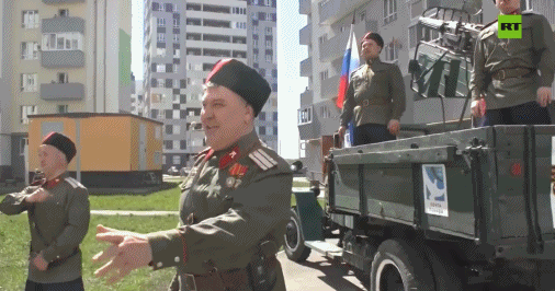 除了线上纪念,疫情也没有阻碍俄罗斯人向英雄老兵们致以胜利日的道贺。据俄罗斯媒体报道,人们已经采取很多无接触的方式到老兵们的住处向其祝贺,例如在老兵们居住的房屋窗户下举行音乐会、送纪念品、在窗下种植花木等。