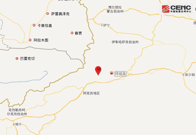 原标题:新疆阿克苏地区拜城县发生4.6级地震 震源深度19千米