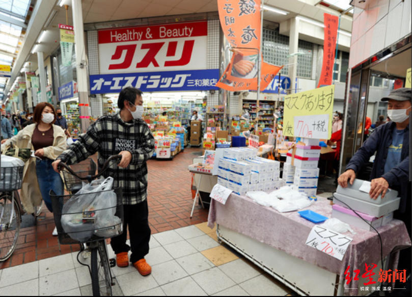 在强大利润空间的刺激下,日本许多商家开始自发地从海外进口口罩回日本销售。因此,在繁华的商业街上,大部分店铺的门口都写着“本店有口罩出售”。日本东京新宿区的一个工艺品店便是其中之一,该店店员透露,“我们的子公司从中国的工厂订购了5万箱口罩。4月21日刚开始卖的第一天,销售额就达到了350万日元。”