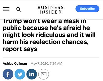 对此,特朗普要么出尔反尔,要么说自己不适合戴口罩,甚至据美国媒体Businessinsider报道,特朗普称担心戴口罩会显得很可笑。