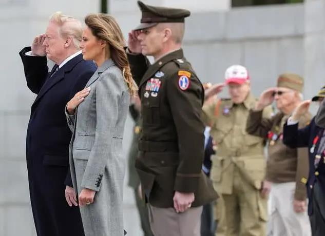 △特朗普夫妇参加二战胜利75周年纪念活动