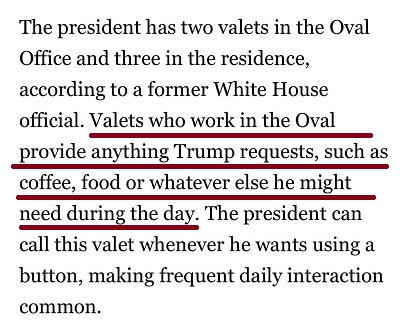 5月7日,白宫证实,一名在白宫为特朗普及其家庭服务的美国海军现役人员新冠病毒检测结果呈阳性。据美国政治新闻网Politico报道,总统贴身随从(personal valet)会帮助总统及第一家庭处理各种私人事务,他们不仅在白宫内负责总统的饮食,还会在总统出行或出国时随行。
