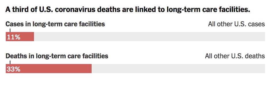 △《纽约时报》:美国三分之一的死亡病例是养老院的老人或工作人员