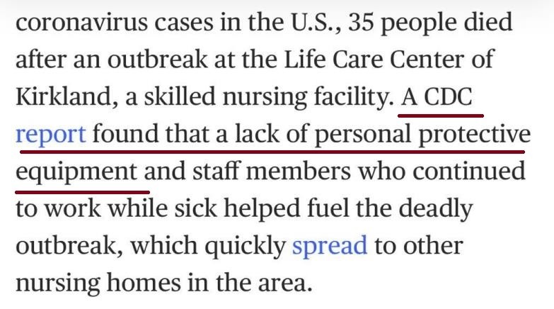 △关于华盛顿州养老机构的相关报道截图,显示2月27日养老机构报告怀疑患者感染新冠肺炎。