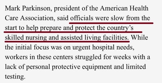 据美联社(AP)报道,美国卫生保健协会(American Health Care Association)主席马克・帕金森(Mark Parkinson)表示,美国官员们从一开始就对美国护理机构、辅助生活机构的防疫准备与保护上行动迟缓。帕金森指出,实际上已不可能阻止病毒在养老机构内传播。