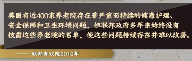 联邦参议院2019年发布的一份报告显示,美国有近400家养老院存在着严重而持续的健康护理、安全保障和卫生环境问题,但政府多年来始终没有披露这些养老院的名单,使这些问题持续存在并难以改善。