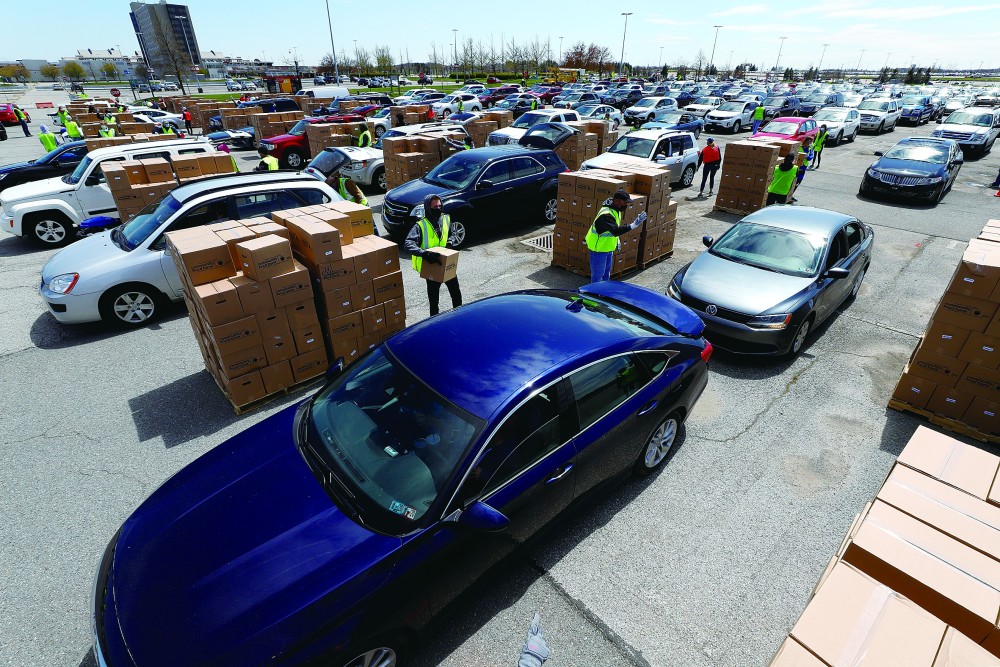 美国vox网站5月9日用一组照片,图文并茂地报道了犹他州、马萨诸塞州等州一些城市底层民众领取政府食物援助的情景。在空旷的露天广场上,堆满成箱的食品,而颇具美国特色的是,人们开着车排着长队等候。在美国首都大华盛顿地区,《环球时报》记者看到的情景是,在好市多(COSTCO)和一些华人超市,大米3月初一度被抢购一空,但进入4月下旬后,面粉、面包等食品没有出现短缺,只是蔬菜、鸡蛋和牛奶时有时无。