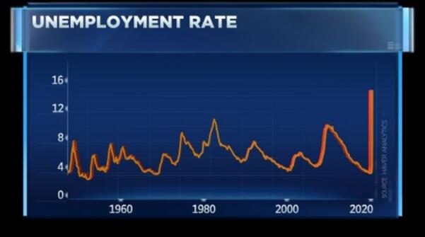 上周五,美国劳工部报告显示4月失业率飙升至14.7%,非农就业人口减少了2050万。这两组就业数据都创下了二战以来的最糟糕纪录。但美国金融市场似乎并未受到这些数据影响,道指、标普500指数和纳指收盘均上涨近2%。赞迪认为,市场似乎迫切地押注美国经济将出现V形复苏。