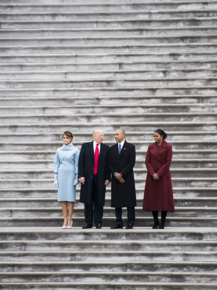 ▲2017年,奥巴马夫妇与当选美国总统的特朗普及夫人梅拉尼娅在美国国会大厦。