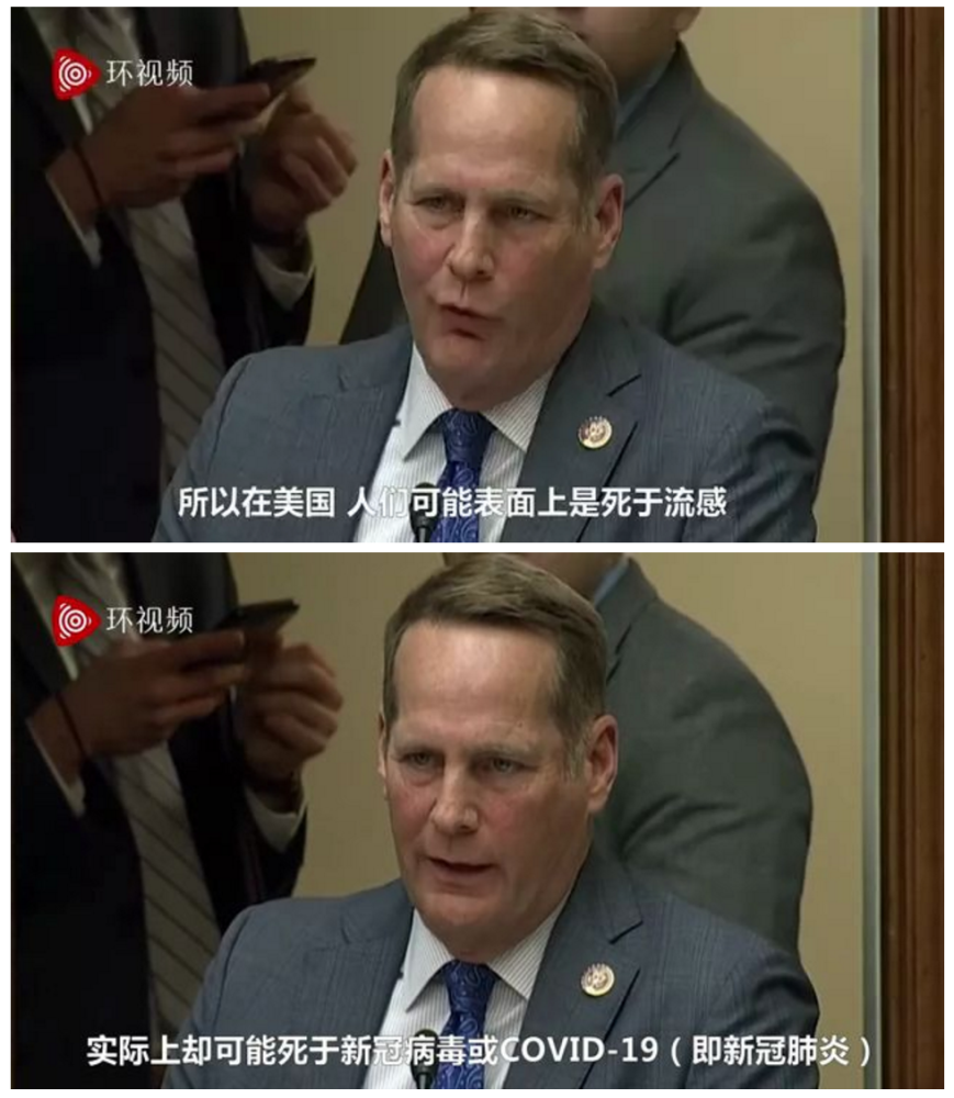 新闻报道5:3月11日,在美国众议院举行的听证会上,CDC主任罗伯特・雷德菲尔德(RobertRedfield)被众议员哈雷・罗达询问“美国一些人可能表面上是死于流感,实际上却可能死于新冠肺炎”的问题时,首次“松口”说:迄今在美国一些病例诊断情况确是如此。