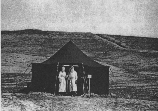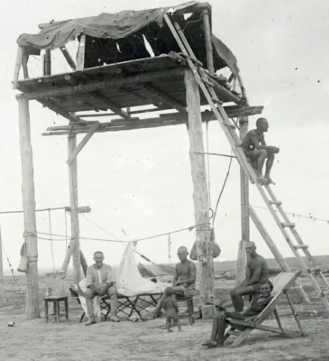△1931年,现土库曼斯坦境内的野外帐篷,图示为睡眠台,旨在减少蚊虫叮咬。军事医学博物馆,圣彼得堡,俄罗斯。