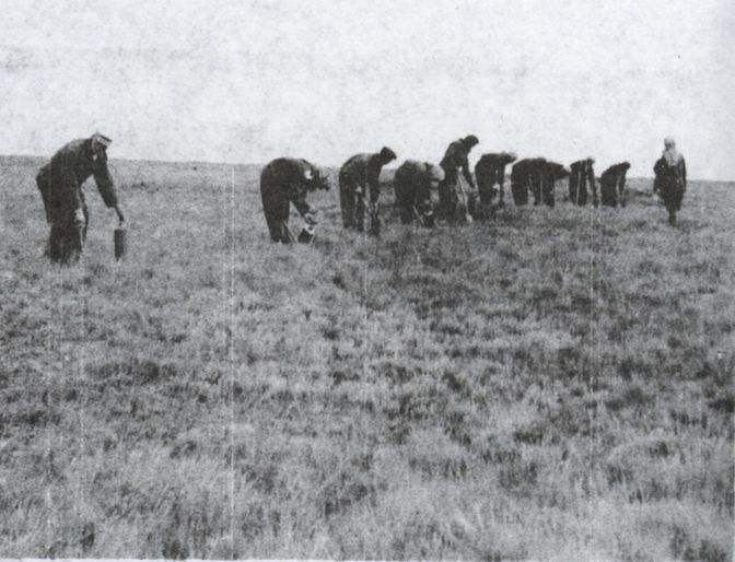 △1930年代,苏联雇佣当地妇女,往啮齿动物洞道里投毒。图源:N. D. Mitrofanov,NATURAL NIDALITY OF TRANSMISSIBLE DISEASES / 伊利诺伊大学出版社。