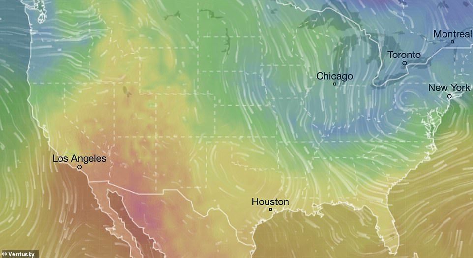 从一款天气预报应用也可以看出来,美国境内的温度显示就如调色盘一般,很是绚烂。