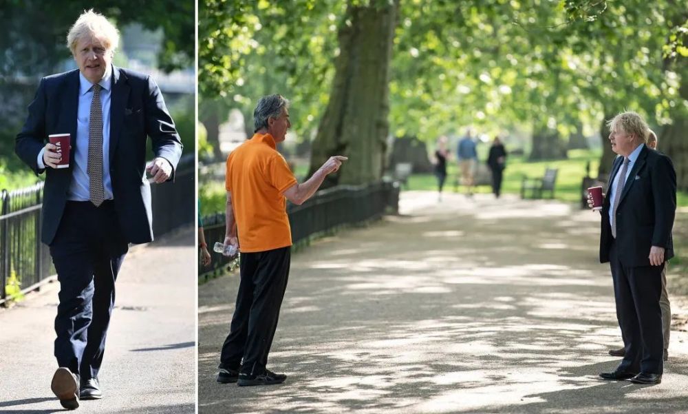 此前一天(9日),刚治好新冠肺炎的首相鲍里斯・约翰逊率先“以身作则”:当天早晨,他不戴口罩,拿着咖啡横穿圣詹姆斯公园的一系列照片在推特上“火了”。颇令人感到讽刺的是,约翰逊同一天还发布推特,呼吁人们在假期中“待在家里”。