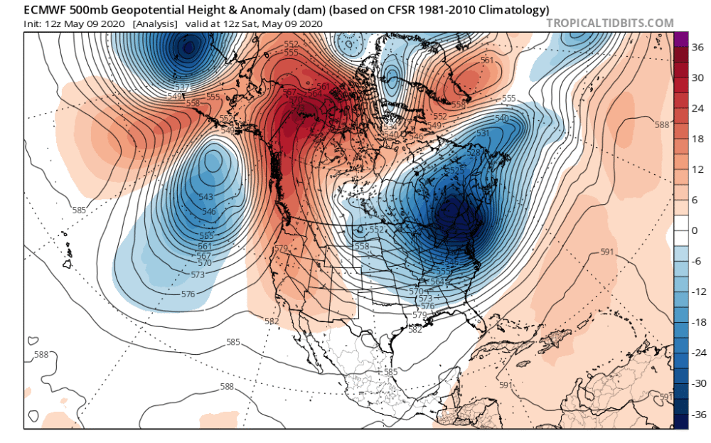 那这是怎么回事?也有的网友或需要疑惑了,中国这边都已经出现了40度以上的酷热高温,美国怎么还像是冬天一样?这是地理差异还是气候异常?我们前文也已经说了,在5月历史上,类似的低温和降雪是不常见的,从分析数据上看,这是因为西半球有一北极涡旋深度南下,目前其中心已经来到美国东北部一线,它携带着大量北冰洋严寒气团,给多地带来强降温的同时也将这个季节活跃的水汽再度冻成鹅毛大雪,形成了当地极为少见的“五月飞雪”奇观。