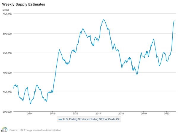 美国能源信息署(EIA)5月6日公布的数据显示,截至5月1日当周,美国商业原油库存增加459万桶至5.322亿桶,为连续15周录得增长,距离2017年3月底的纪录高位5.355亿桶仅一步之遥。当周美国俄克拉荷马州库欣原油库存增加206.8万桶至6544.6万桶,为连续9周录得增长。