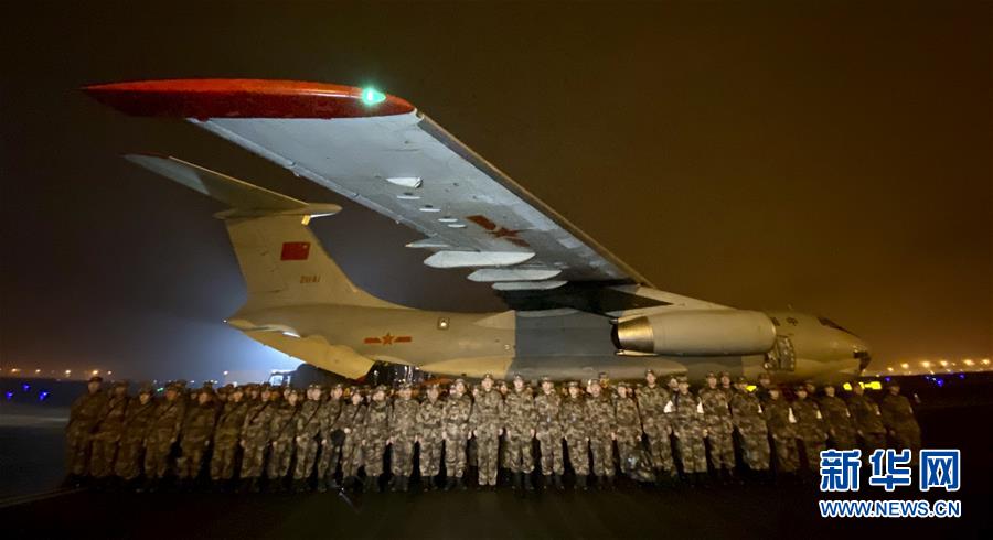 1月24日晚,由陆军军医大学抽调精干医务人员组建的医疗队在重庆江北国际机场停机坪集结,准备连夜驰援武汉。 新华社发