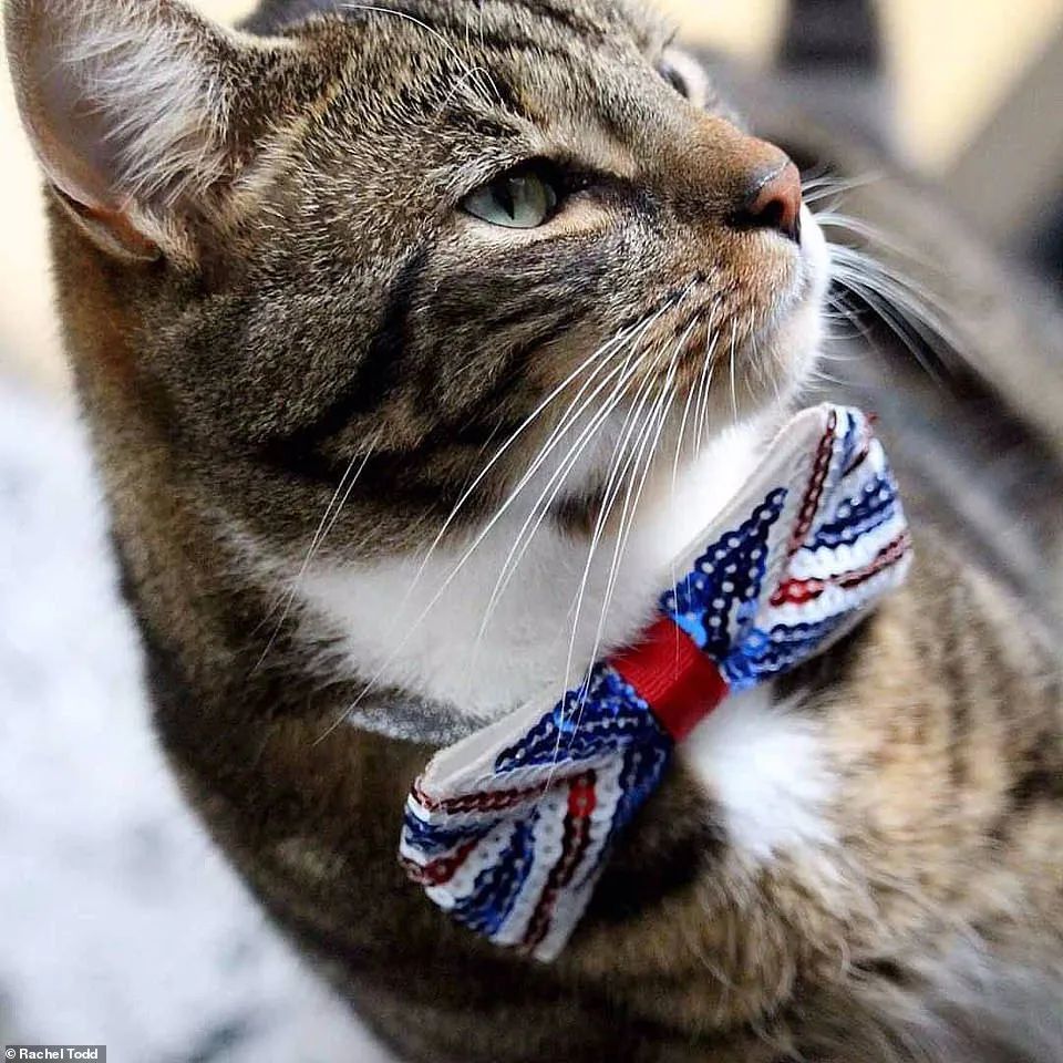 英国民众为自己的宠物猫打上国旗范儿的领结。