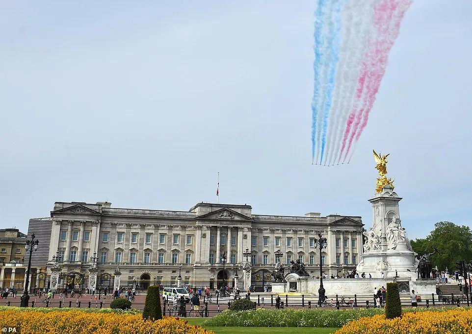 红箭飞行表演队飞越白金汉宫。