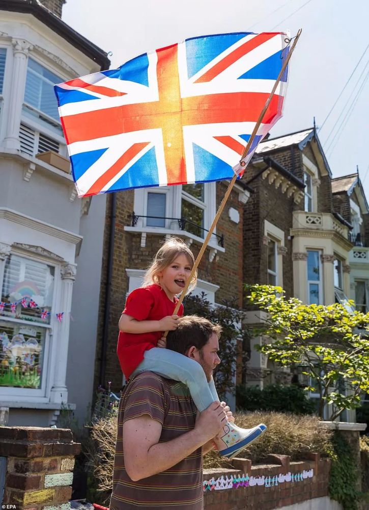许多家庭在家门前挂起了英国国旗,有些人则穿着古装,举行家庭茶会。