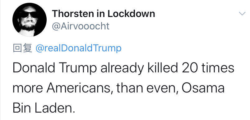 △网友:特朗普杀死的美国人比本拉登还多20倍。