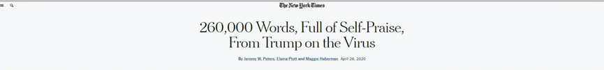 △《纽约时报》:特朗普针对疫情的言论 26万个单词充满了自夸