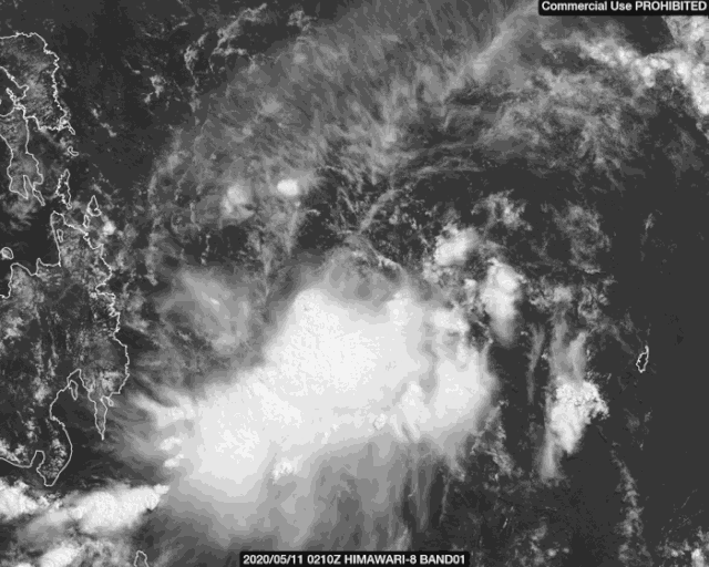葵花-8号卫星监测到的热带低压动态云图(时间段:2020年5月11日13时30分至5月11日20时30分)