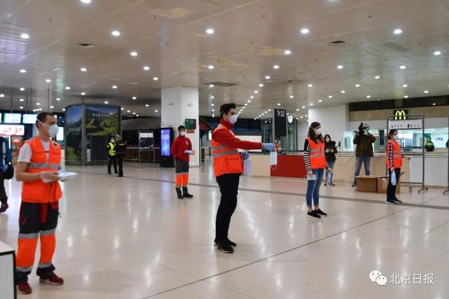 西班牙志愿者派发口罩保障复工