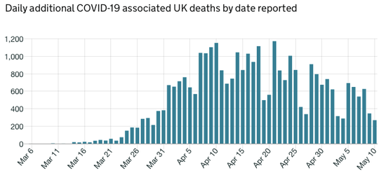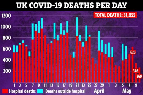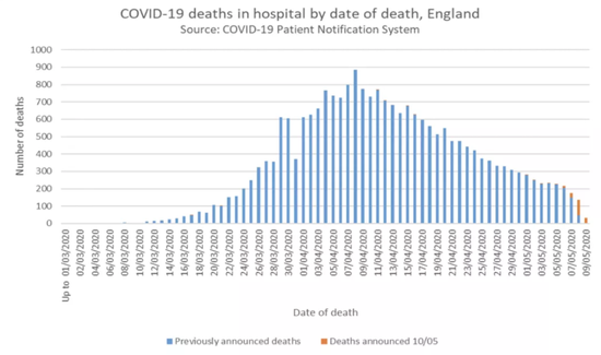 英国每日报告的死亡走势:近两日有所下降