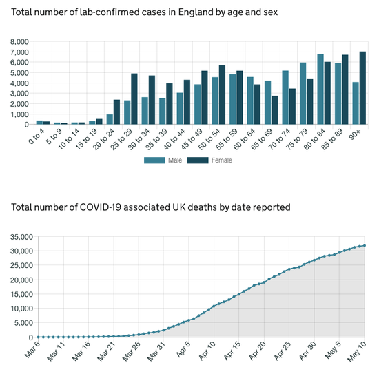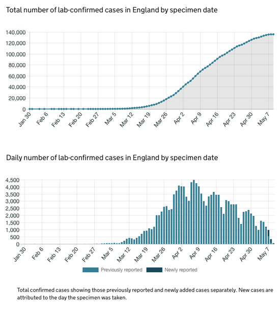 *最后附刚刚更新的疫情图表,包括英国病例增长、地区分布。英国每日报告的确诊走势