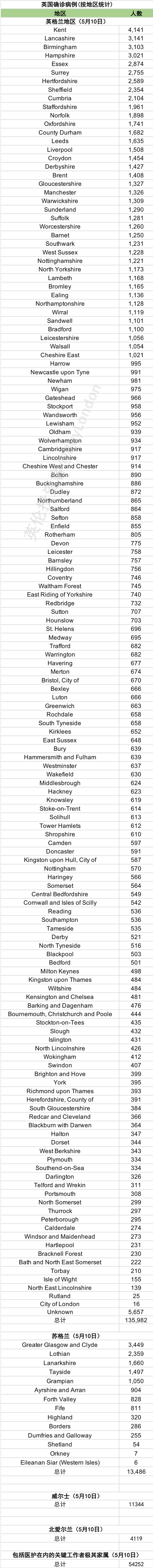 刚刚更新的全英确诊具体地区分布(包括英格兰、苏格兰、威尔士、北爱、医护人员)