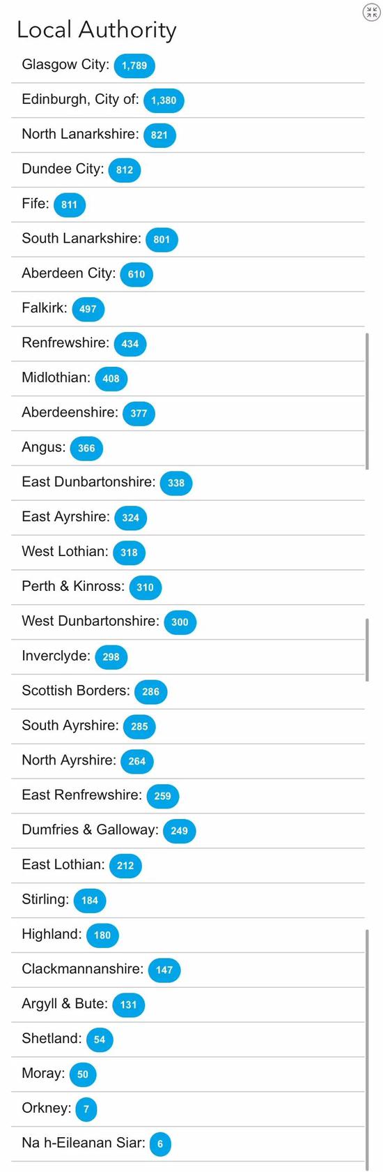 苏格兰地区确诊具体地区分布