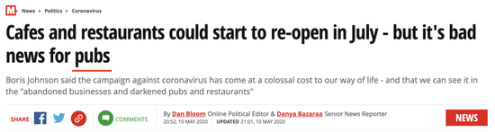 鲍里斯在讲话中特别没有提到酒吧,这也被英媒解读为酒吧业的坏消息,即酒吧至少要关门2个月以上。