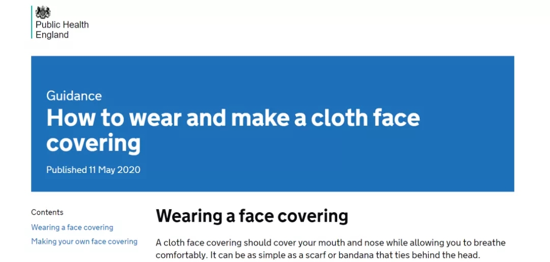 为了鼓励、指导民众戴口罩,英国卫生部发布了科普专页,题为《如何佩戴和自制口罩》。