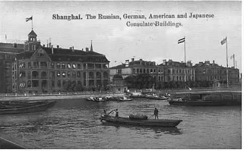 俄罗斯联邦驻上海总领事馆位于黄浦路20号,建筑具有折衷主义风格,由德籍建筑师汉斯 埃米尔 里勃设计,周水记营造厂承建,1916年竣工。坐北朝南,混合结构假四层,可三面凭栏眺望黄浦江与苏州河。平面呈长方形,立面底部为仿石块饰面基座;二、三层窗间墙连贯,窗裙墙内收;孟莎式坡屋顶,德国式弧形老虎窗,顶端有穹顶t望塔。是至今仍在使用、保存较好的上海早期领事馆建筑。